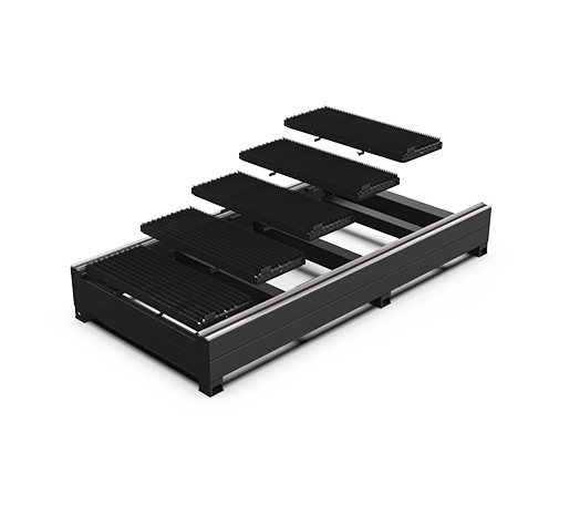 工作臺采用模塊化設計,更換靈活便捷;刀條錯位布局,受力均勻,延長工作臺的使用壽命。