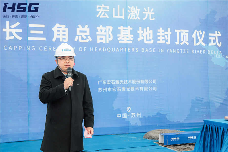 在聽取基地建設進度匯報后,宏山激光董事俞宏標先生為此次活動發(fā)表致辭,俞總對多方施工單位表達了感謝,并表示:長三角總部基地的建設,是宏山激光國內乃至全球布局發(fā)展的重要一環(huán),是宏山激光增資擴產、擴大企業(yè)實力、完善戰(zhàn)略布局的重要步驟。未來,長三角總部基地將扎根蘇州,面向華東、華北地區(qū),為用戶提供“家門口”的激光智能裝備服務。